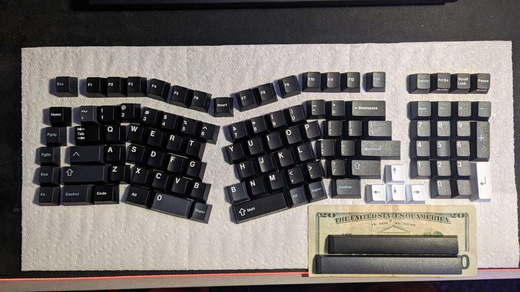 Just in case you were curious, this is how it exists at the moment, with beautiful CRP Red Cyrillic caps, and no foam, just tape. I love it to bits.
