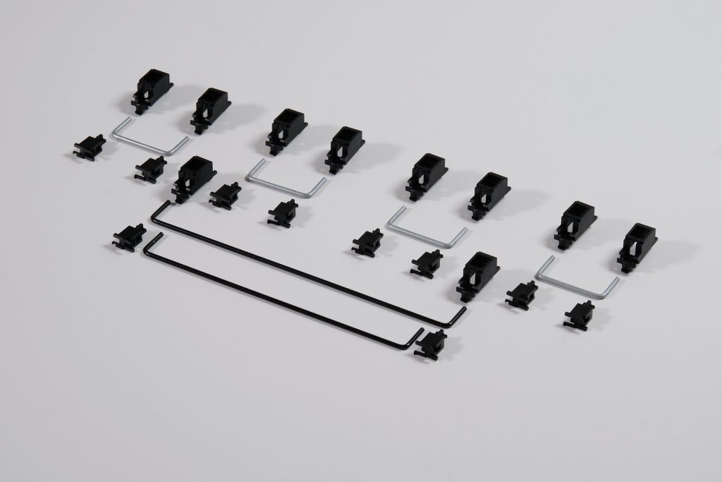 On the contrary, you may also occasionally run into the Costar design, which rids the housings that encase the stems that hold the wire, using keycap inserts with loops instead. This design is usually only used in mass-produced boards for their cheaper part list, but is loathed by the masses for the much more frustrating process of removal and placement because of its direct attachment to the keycap. I would personally recommend avoiding these if possible, but it is still possible to make them work and sound good; you’ll want to pull your hair out when you try to tune them, though.