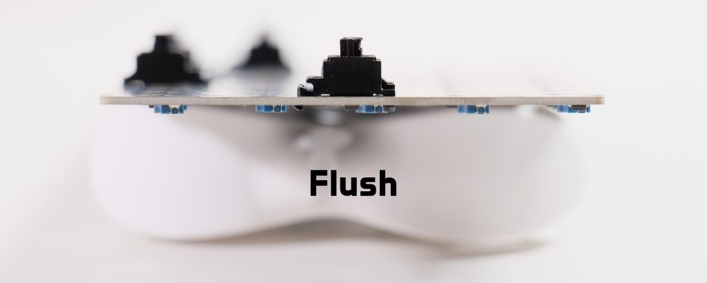 For Cherry-style stabilizers, you may also find these in two varieties: One where the stabilizers are fixed to the plate, and one where they are mounted to the PCB. PCB-mounted sets are often preferred since the mechanism for adhering to the PCB (either a two-way clip or a screw) is generally much more stable than the clip used to mount to the plate on plate-mounted stabilizers. PCB-mounted sets also may come in shapes for 1.2mm or 1.6mm thickness PCBs: For 1.6mm PCB stabilizers, they can be used in 1.2mm PCBs if they come with shims that close the 0.4mm difference to ensure they mount securely, but as such, 1.2mm PCB stabilizers cannot be adapted for 1.6mm PCBs. Many stabilizer kits also come with stabilizer pads, which are an artifact of older tolerances and modding styles that are typically not used anymore, and instead get used elsewhere such as for case force-breaking.