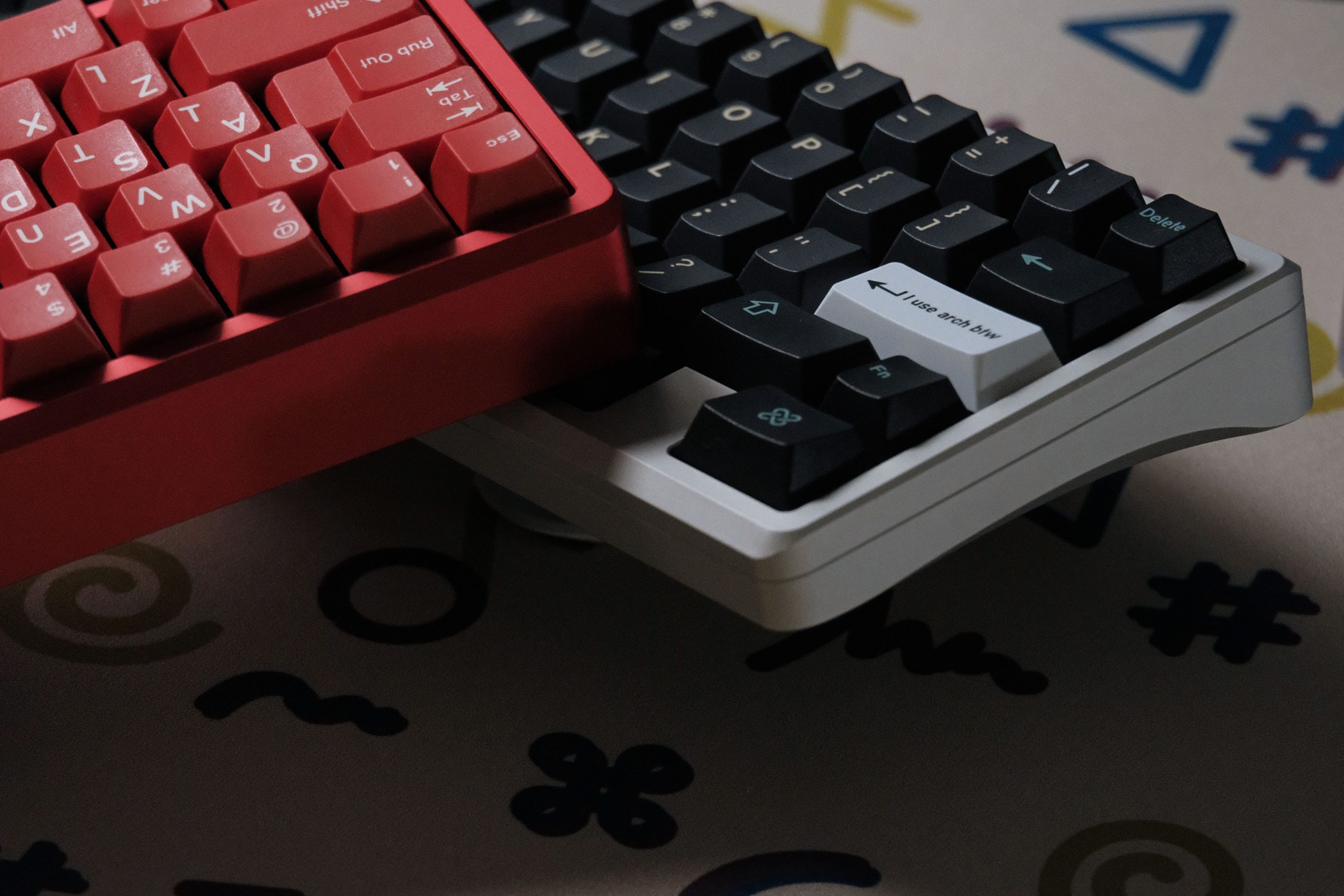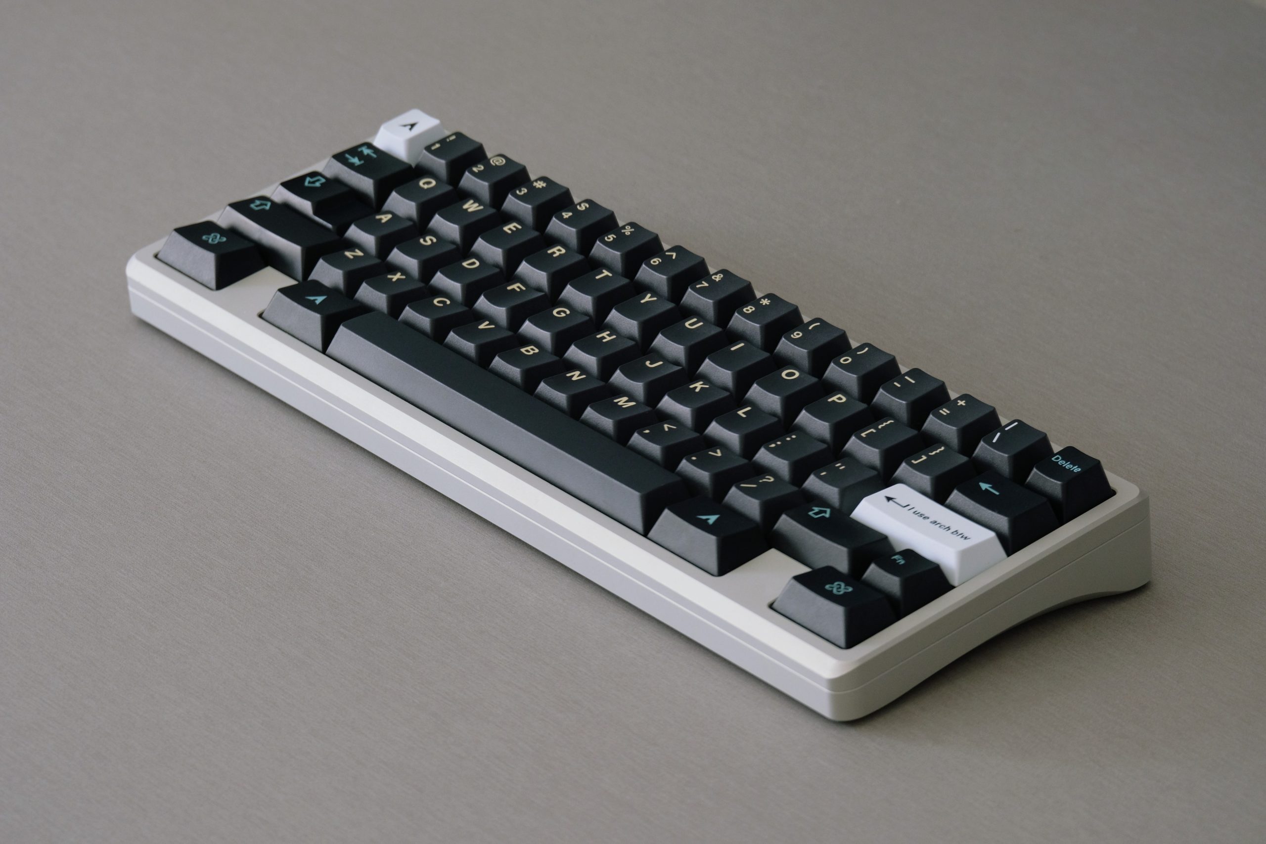 Feel-wise, using the 90A tadpoles is a fair bit more stiff than your average gasket mount board, probably more comparable to a plastic top mount like PC or PP. Regardless of that, the low front height (Geon’s website reports 16.5mm but it’s more like 18.5mm by the front of the keycap) in combination with the 6° typing angle makes for a very comfortable board that you don’t want to put away.