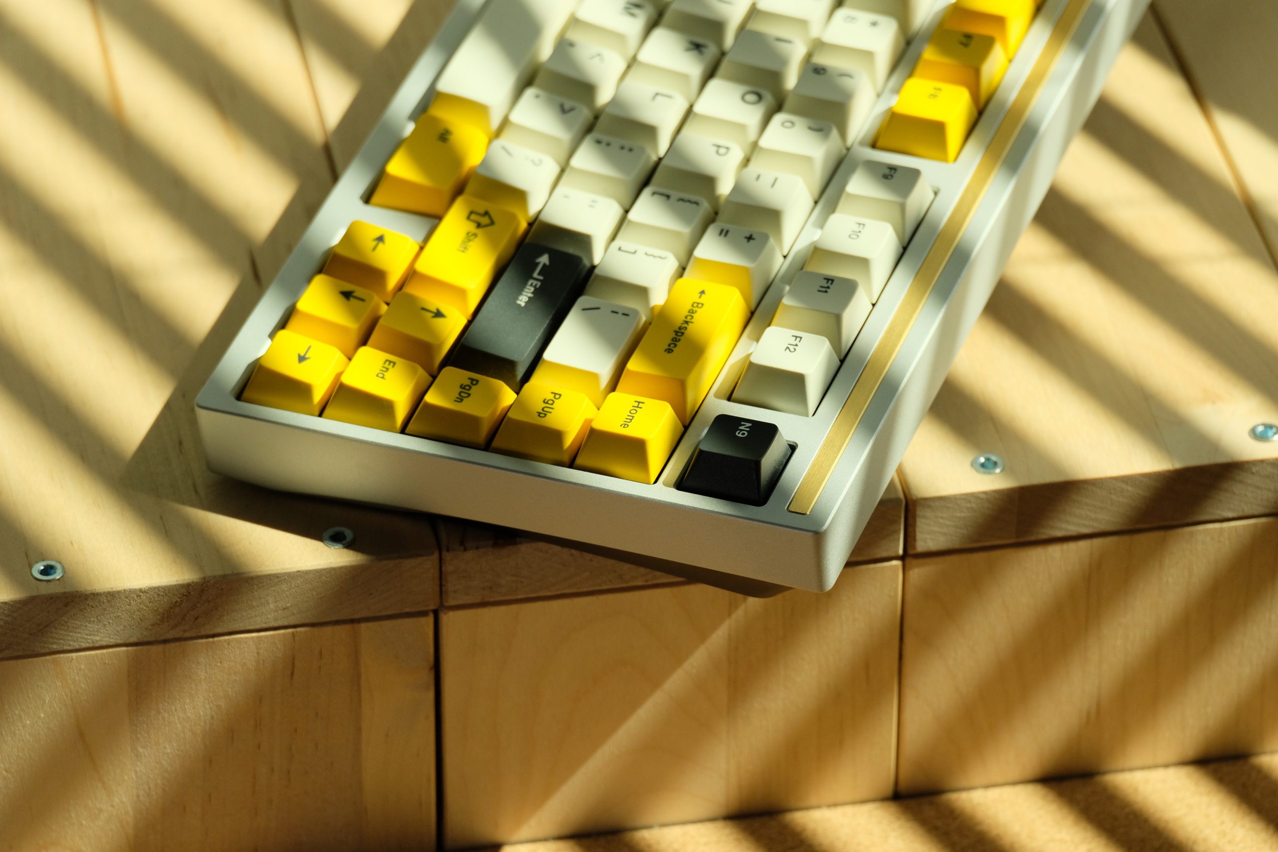 Atop the typing area is a simple accent bar that stripes across the width of the keyboard which can come in a variety of materials, colors, whatever it may be. You can go as basic as a simple white aluminum accent to as flavorful as one of the limited flame-patina brass accents, or as stylish as one of Matthew Encina’s (ModMusings) collaboration white oak accent bars. Regardless of how you go, it perfectly serves its purpose to both break up the design with a small statement piece while also helping frame the board to keep it from looking ginormous with a tall forehead. The only thing I’m surprised to have not seen yet is a custom modelled accent bar that instead implements a proper pen rail, but I digress, maybe that’s going outside of the scope of the design.